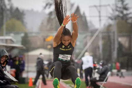 2018-19: Indoor – Finished in fifth place (6.31m/20-8.5) in the long jump at the NCAA Championships … moved from ninth to fifth on her final jump of the competition … won the Razorback Invitational with a personal best of 6.36m/20-10.5 … moved to No. 4 on the UO top-10 list … established season bests of 7.61 in the 60 meters and 8.47 in the 60-meter hurdles. Outdoor – Finished seventh in the long jump at the NCAA Championships with a personal best of 6.43m/21-1.25 … became the No. 4 performer in UO history … NCAA West Preliminary qualifier in the 100-meter hurdles and long jump … Pac-12 champion in the long jump (6.29m/20-7.75) for a second time … also finished in seventh place in the 100-meter hurdles at the conference meet … ran a personal-best 13.62 in the Pac-12 preliminary round … moved to No. 7 in program history … runner-up in the long jump (6.35m/20-10) at the Mt. SAC Relays … posted a wind-aided 13.59 in the 100-meter hurdles at the Desert Heat Classic.