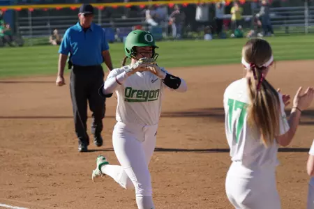 Ariel Carlson singled to left and stole second. Alyssa Daniell then tripled down the left field line to score Carlson. The next batter, Hanna Delgado, then ripped a 2-2 pitch over the right centerfield wall to put the Ducks ahead.