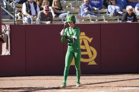 Led all Pac-12 hitters with a .426 batting average in conference games, 70 points better than second place (.356) ... Her .377 overall batting average ranked sixth in the Pac-12 and first among Ducks to headline breakout sophomore season ... Ranked ninth in the Pac-12 with a .430 on-base percentage, drawing 12 walks with only 13 strikeouts in 130 at-bats ... Hit two home runs and had 11 doubles for a .508 slugging percentage ... Appeared in 59 of Oregon's 62 games, making 46 starts ... Had three straight two-hit games and five in a six-game span from April 29 to May 11, going 6-for-14 (.429) over that stretch … vs. FGCU (March 2): Notched the first of 15 multi-hit games, going 2-for-2 with a walk ... vs. UCLA (March 17): Recorded two hits in a 2-for-4 day vs. the No. 3 Bruins … at Oregon State (March 29-30): Went 2-for-3 with two doubles before going 2-for-4 with another double the next day vs. the Beavers, her third two-hit game in a four-game span ... vs. Utah (May 4): Blasted her first home run of the season – a solo shot in the fourth inning ... vs. Kentucky (May 24-26): Went 2-for-3 with two runs scored to open the Super Regionals, and added a double and an RBI in another two-hit night two days later to send UO to the Women's College World Series ... vs. Arizona State (May 31): Blasted her second homer of the year against the No. 8 Sun Devils to open the WCWS, notching her lone two-RBI game of the season ... vs. Florida State (June 2): Went 2-for-3 with a double and an RBI in UO's final game of the WCWS.