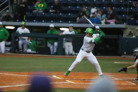 Played in all 55 games, starting all but one in center field … Set a new Oregon freshman record with six home runs and tied for the team lead … Second on the team with 32 RBI and tied for third with six stolen bases … Hit .212 with five doubles and 24 runs scored … Second on the team with eight multiple-RBI games and third with 14 multi-hit games … Hit safely in the last five games of the season, going 6-for-19 (.316) with five RBI, a double and a home run in that stretch … vs. Loyola Marymount (Feb. 16): Hit a solo home run in career debut, finishing 2-for-4 … vs. FAU (March 5): Went 2-for-5 with an RBI double in a win … vs. Cal (March 24): Finished 2-for-3 with two RBI in a 5-4 win … at Stanford (March 29): Drove in a season-high four runs, going 2-for-4 with a two-run home run in a 10-1 win … at San Francisco (April 2): Ripped a solo shot in a win, finishing 2-for-4 with two RBI and two runs scored … at Washington (April 15): Delivered a go-ahead solo home run in the 11th inning and finished 2-for-4 with two RBI and two walks … at Oregon State (April 21): Went 2-for-5 with a double and two runs scored … vs. Utah (May 11): Hit a two-run home run to plate a pair of insurance runs in a 6-2 win.