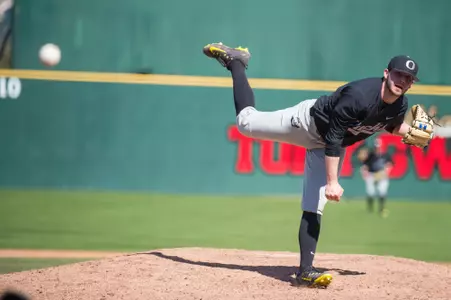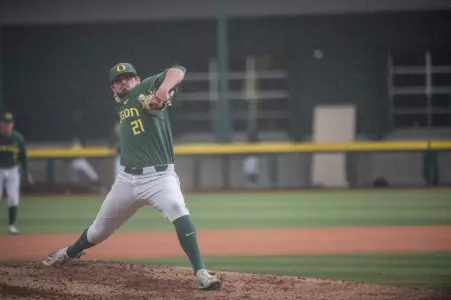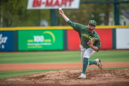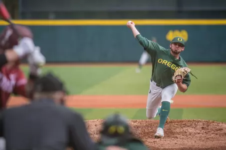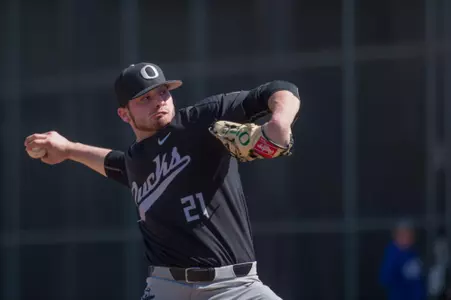Named first-team All-Pac-12 Conference for the second straight season ... Received Pac-12 Pitcher of the Week honors twice, following dominant starts against Stanford (April 2) and USC (April 30) … Appeared in 21 games while making 10 starts after joining the weekend rotation midway through the season ... Went 6-4 with a team-leading 2.98 ERA while recording five saves ... Fanned the fourth-most batters in a single season at Oregon with 98 punch-outs while walking 37 over 84.2 innings ... Went 6-3 with a 2.77 ERA as a starter … Turned in a quality start in eight of his 10 starts … vs. USC (April 28): Struck out third-most batters in a game in school history, fanning 15 while walking none in a career-high eight innings to earn the win and Pac-12 Pitcher of the Week honors ... vs. Arizona (May 25): Pitched first career complete game in a two-hitter, giving up a run and striking out six while walking three ... at Stanford (March 29): Got the win after fanning nine and walking just one over six shutout innings to earn Pac-12 Pitcher of the Week recognition ... vs. Cal (March 24): Made first career start and picked up the win, throwing five innings with four strikeouts ... vs. Washington State (April 6): Went seven innings, striking out eight while giving up a run on six hits to earn the win ... at Washington (April 15): Pitched 7.1 innings while fanning seven in a no-decision against as Husky team that made it to the College World Series ... at UC Irvine (May 4): Took the loss, pitching seven innings with nine punch-outs while giving up two runs on six hits for sixth quality start ... vs. Utah (May 11): Battled through seven innings of two-run ball to get the win, striking out two and walking six ... at Oregon State (April 20): Turned in a strong start at an eventual College World Series team in Oregon State, going seven innings with five strikeouts while giving up two runs on five hits in a loss ... vs. Loyola Marymount (Feb. 16): Threw two innings and struck out three ... vs. Indiana State (Feb. 18): Picked up first save of the season against Indiana State, going two innings and striking out one ... at Loyola Marymount (Feb. 24): Earned save at Loyola Marymount, pitching one perfect inning ... vs. FAU (March 2): Got third save, striking out one in an inning of work ... vs. UC Davis (March 10): Fanned four and did not allow a hit over two innings to pick up a save ... vs. Gonzaga (March 13): Struck out five in two innings to record fifth save.