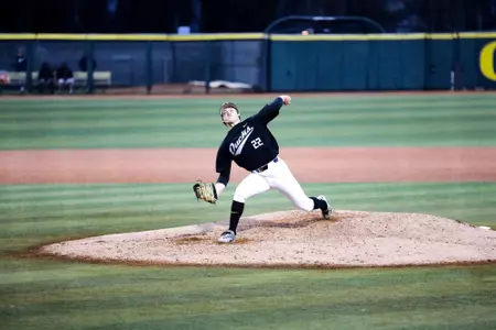 A National Collegiate Baseball Writers Association (NCBWA) third-team All-America pick … Named first-team All-Pac-12 Conference … On the midseason watch list for the Stopper of the Year Award … Finished the season 2-2 with a 3.08 ERA and 11 saves in 20 appearances … Allowed just nine runs on 14 hits in 26.1 innings pitched, while striking out 37 and walking 14 … Held opposing hitters to a .149 batting average … Allowed just two of 11 inherited baserunners to score (18.2 percent) … Did not allow a run in 16 of his 20 appearances … Finished 12th in the nation in saves … Ranked third in the Pac-12 in saves and fourth in games finished (18) … In conference only games, went 2-1 with a 3.06 ERA and seven saves in 13 appearances … Allowed just six runs on 10 hits in 17.2 innings pitched, while striking out 23 and walking eight … Held opposing Pac-12 hitters to a .156 batting average … Did not allow a run in 10 of 13 appearances in league play … Ranked second in conference games in saves and fourth in games finished (11) … vs. Seattle (Feb. 27): Opened the season striking out four of seven batters faced while tossing two hitless innings with a walk allowed … at #15 UC Santa Barbara (March 5-7): Made two appearances in Oregon’s four-game series sweep, picking up saves in games two and three … Inherited one-run leads in both games entering the games in the bottom half of the ninth innings … Struck out one and walked one in a scoreless ninth inning of a 7-6 game-two win … Had an identical pitching line in a 7-6 game-three win … vs. Arizona State (March 21): Locked down a game-three win with a scoreless ninth inning helping Oregon clinch a series win … Struck out one in the outing … vs. New Mexico State (April 3): Inherited a one-on, one-out situation in a one-run game in the top of the ninth … After giving up a two-out single putting runners on first and second, fanned the final hitter to get the save … vs. #21 Oregon State (April 9-11): Made two appearances in Oregon’s first series sweep of the Beavers since the 2011 season … Retired six of seven batters faced in games one and two, fanning five while walking one … Did not give up a hit in the two appearances … Retired the Beavers in order to pick up fifth save of season while ending game one with a K … Got the final three outs in the game-two win, striking out four in the ninth inning (one runner reached on an error after striking out) … at USC (April 18): Helped Oregon clinch the series picking up save number six in the series finale … Retired all three batters faced in the ninth inning of a 7-5 win … vs. UCLA (April 23-25): Picked up a save in game one and a win in game two helping the Ducks win their third straight conference series … Fanned one while working a scoreless ninth to clinch a 5-3 game-one win … Picked up first win since Feb. 21, 2020, with a scoreless top of the 10th in an Oregon walk-off win in game two … vs. Washington (May 7-9): Struck out six in two appearances (2.0 IP), retiring all seven batters faced in a Oregon series sweep … Tossed 1.2 innings in a 5-1 game-two win, picking up eighth save of season while fanning a season-high five … Inherited a two-on, one-out situation in the top of the eighth … Struck out both batters faced in the inning to get out of the jam … Struck out the side in the ninth to lock down the win … Got the final two outs in a 9-3 win in the series finale, retiring both batters faced including one on a K … at Utah (May 14): Registered ninth save of the season in a 7-3 series-opening win … Entered the game with the tying run at the plate in the bottom of the eighth inning and two outs … Fanned the first batter faced to end the frame … Retired the Utes in order in the bottom of the ninth to clinch the victory … vs. #17 Stanford (May 21-23): Made two appearances, pitching more than an inning in back-to-back outings for the first time during the season … Combined with starter Robert Ahlstrom in a 2-1 series-opening win … Retired six of seven batters faced to pick up 10th save of the season … Inherited runners on the corners with one out in the eighth … Allowed just one run to score getting the final two hitters in the inning on a K and ground out … Gave up a two-out walk in the ninth but ended the inning with a ground out … Tossed a season-high 3.2 innings in the series finale … Pitched three scoreless innings (9th, 10th, 11th), before giving up three runs with two outs in the 12th to take the loss … Struck out three in the outing … NCAA Eugene Regional (June 4-7): Made three appearances in the tournament, striking out seven in 4.0 innings of work … vs. Central Connecticut State (June 4): Worked an inning of relief, pitching a scoreless ninth … Earned 11th save, fanning two in the 13-10 win … vs. Gonzaga (June 5): Wrapped up an Oregon 7-3 win with a scoreless ninth inning … Enticed a ground-ball double play before finishing the game with a strikeout … vs. LSU (June 7): Pitched two innings … Struck out two in a scoreless seventh, before giving up three runs in the bottom of the eighth.