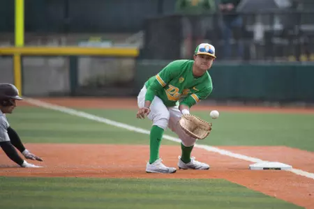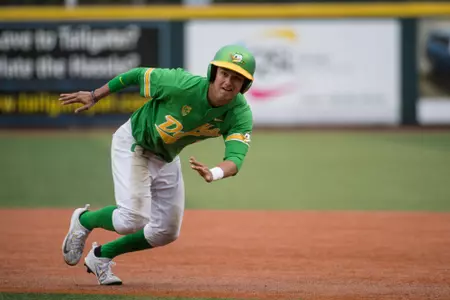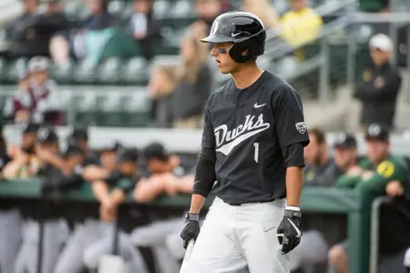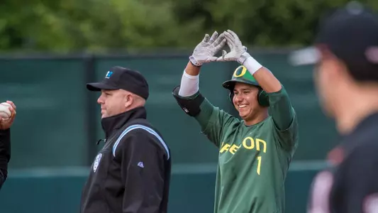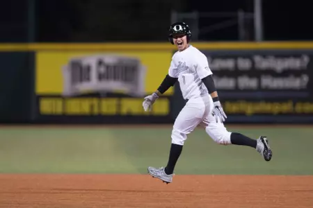 A first-team All-Pac-12 selection, while being named to honorable mention Pac-12 All-Academic Team … Finished with the highest batting average since baseball returned in 2009, hitting .352 … Led the team in hits with 75 and runs with 34 … Hit one home run with nine doubles and 24 RBI … Started all 55 games with 29 at shortstop, 24 at first base and one each at second and third base … Had a league-best .459 on-base percentage in Pac-12 games … Finished with the third-highest batting average in the league in conference games, hitting .381 in Pac-12 play, while tying for third in hits with 45 … Led the team with 24 multi-hit games putting him in third on Oregon’s single-season list Hit .435 in the month of May … Ended the season on 15-game hitting streak, tied for the longest streak in Oregon single-season history … Went 27-for-59 (.458) in that stretch with seven multi-hit games … Recorded five consecutive multi-hit games from March 3 to March 9 going 12-for-22 (.545) with five RBI, a home run and a double in that span … vs. Mississippi State (March 3): Hit first career home run in a 1-0 win, finishing the game 3-for-4 … vs. Mississippi State (March 5): Delivered a walk-off single in the 11th inning to cap off a 2-for-5 day … vs. Stanford (April 21-23): Had a productive series, finishing the weekend 8-for-14 with two doubles, two RBI and four runs scored … at USC (May 20): Recorded a career-high five hits in a 5-for-5 day to become the first Duck to have five hits in a game since 2012.