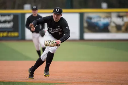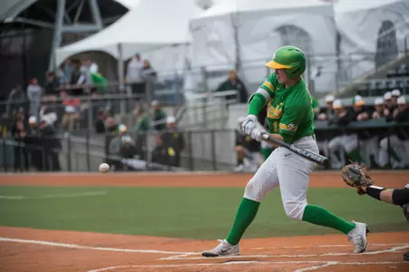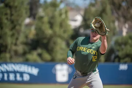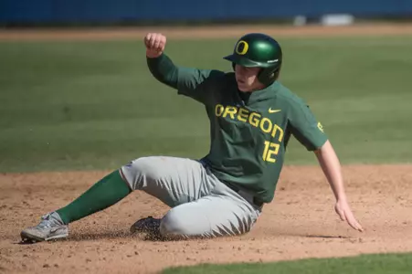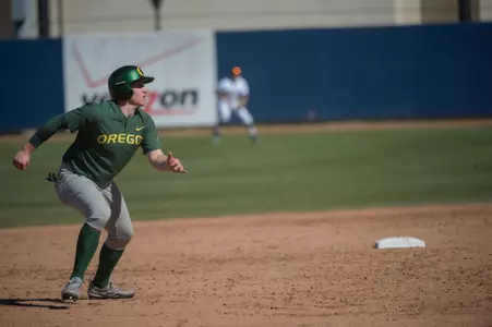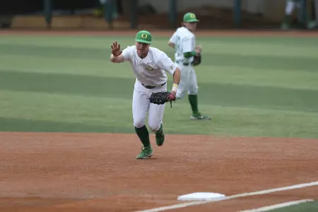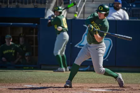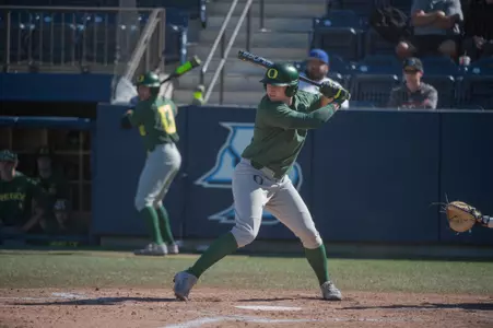 A Collegiate Baseball third-team All-America pick and a first-team All-Pac-12 Conference selection after batting .322 (70-for-216) with eight home runs, 35 RBI, 48 runs scored, 20 doubles, two triple and 28 walks … Reached base at a .449 clip while slugging .559 … Had 21 multiple-hit and 11 multi-RBI games … Named to the Pac-12 Conference All-Defensive Team … Earned Pac-12 Conference and Bobby Bragan Collegiate Baseball Slugger Award Player of the Week honors once each … Finished in the top 10 all-time in seven Oregon single-season categories … Tied the old school record while finishing second all-time in doubles (Tanner Smith set a new record with 24 two baggers) … Ranked fourth all-time in OBP, fifth in slugging percentage, seventh in runs, ninth in multiple-RBI games and 10th in multiple-hit games and longest hitting streak (12 games) … Led the Pac-12 in HBP, while ranking in a tie for third in doubles and in eighth in OBP … Finished ninth in the nation in HBP, 18th in doubles, 21st in hit-by-pitch per game and 45th in doubles per game … In Pac-12 Conference games, batted .349 (38-for-109) with five home runs, 22 RBI, nine doubles, two triples, 25 runs scored while leading the team in total bases with 66 … Slugged a team-best .606 and had a .482 OBP … Led the league in HBP (13) in league games, while ranking in the top 10 in OBP (4th), total bases (8th), batting average (9th) and slugging percentage (10th) … Named the Pac-12 Player of the Week on April 13 after leading the Ducks to a 3-1 record with a conference sweep of Oregon State … Batted .636 (7-for-11) for the week, with a home run, four RBI, three runs scored and a double while finishing with a .688 OBP and a 1.091 slugging percentage … Claimed Bobby Bragan Collegiate Baseball Slugger Player of the Week honors on April 21 after leading the Ducks to a 3-1 record with a win at Portland and a series win at USC … Batted .667 (10-for-15) during the week while collecting multiple hits (3 twice) and a RBI in all four games (2 twice) … Also scored a run in all four games, including three against Portland and in the USC series-clinching win … USC finale capped a stretch of six consecutive games with multiple hits starting with game two of the OSU series … Batted .667 (14-for-21) with seven RBI and nine runs scored during the six-game stretch … at #17 Oregon State (March 12-14): Helped lead the Ducks to a nonconference series win in Corvallis, batting .455 (5-for-11) with a double and run scored … Reached base multiple times in all three games, including a 3-hit game in a game-two win … Went 1-for-4 with a double and HBP in a 7-0 game-one win … Was 3-for-4 with a run scored in a 3-0 series-clinching win in game two … Reached twice (1-for-3, BB) in the series finale … vs. Arizona State (March 19-21): Batted .300 (3-for-10) with a home run, a double, two RBI, three runs scored and two walks in a series win … Went 2-for-3 with a two-run home run, two RBI, two runs scored and a walk in a series-evening win over the Sun Devils in game two … vs. Portland (March 23): Walked twice and scored a pair of runs in a 10-1 win … at #21 Arizona (March 26-28): Reached base twice in the opener (1-for-4, HBP), including first triple of the season … Went 2-for-5 with three RBI, two doubles and a HBP in an 18-13 win in the series finale … vs. New Mexico State (April 1-3): Drove in multiple runs in games one and two of a four-game series sweep … Went 2-for-3 with a home run, a double, two RBI and a run scored in a 5-0 game-one win … Homered again in game two going 1-for-3 with two RBI and a run scored in an 8-2 win … at Portland (April 6): Broke Oregon’s career doubles record with a fifth-inning double down the right-field line … Reached base three times (2-for-3, BB) with a RBI and run scored … vs. #21 Oregon State (April 9-11): Batted a team-best .625 (5-for-8) with a home run, three RBI, a double, two runs scored, a walk and two HBP to lead the Ducks to a series sweep of the Beavers … Had multiple hits in two of the three games … Drove in a pair of runs in a 4-1 game-one win, including hitting a fifth-inning solo home run to give the Ducks a 1-0 lead … Plated the go-ahead run in the bottom of the eighth on a bases-loaded HBP in a three-run inning … In the game-two series-clinching 5-1 win, singled to lead off the second inning and came around to score to give the Ducks the lead for good … Went 2-for-4 with a run scored in the victory … In series finale, went 2-for-2 with a double, RBI and HBP to help clinch a series sweep with a 5-4 (11-inning) win … Drove in a run with a sacrifice fly in the in the fourth inning to tie the game … Also reached in the Ducks’ 3-run eighth inning that tied the game … at Portland (April 14): Reached base three times (2-for-3, HBP) with a double, RBI and three runs scored in a 18-1 win … at USC (April 16-18): Became Oregon’s career leader in hits in game one of the series with his 212th knock … Hit a blistering .667 (8-or-15) with a double, triple, five RBI, five runs scored, two walks and a HBP in a series win … Had multiple hits in all three games, including three in each of the last two games … Reached base three times in games one and two and five times in the finale … Went 2-for-4 with a RBI, a run scored and a walk in the opener … Drove in a pair of runs while going 3-for-5 with a run scored in a 13-4 game-two win … Helped clinch the series win with three hits, a walk and a hit-by-pitch … Went 3-for-3 with a triple, two RBI and three runs scored … Gave the Ducks a 5-4 lead in the top of the eighth with a two-RBI single … vs. UCLA (April 23-25): Batted .444 (4-for-9) with two doubles, six RBI, three runs scored, two walks and two HBP in a series win … Had hits in all three games, while reaching base multiple times in each of the contests … Went 1-for-2 with a HBP and a run scored in a 5-3 game-one win … R