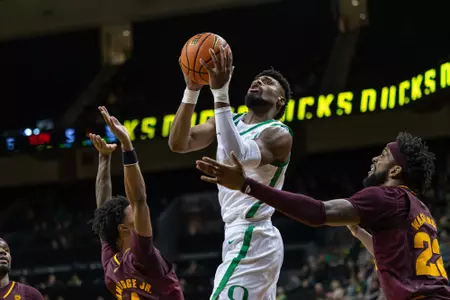 Averaged 10.1 points and 5.3 rebounds on 42.0 percent shooting … Only player to start all 35 games for the Ducks and one of five to play in every game … Recorded two double-doubles, including his best statistical outing of 25 points, 13 rebounds and two blocks vs. Colorado in the Pac-12 Tournament … 11 points and six rebounds in the road win over No. 3 UCLA … Had nine points and nine rebounds against Colorado on the road, followed by 11 points and seven rebounds two days later in the win over Utah … Scored in double-figures 12 times, with four 20-point games … Was the team’s leading rebounder with five or more rebounds in 20 games.