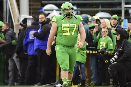 2015 – Stepped onto the field for 12 of 13 games, logging more playing time (475 snaps) than any other of the team's interior offensive line reserves . . . Provides the flexibility of being able to play either guard or center . . . Experienced his most extensive action of the year in a starting role vs. Georgia State (93 snaps) before also opening at right guard against Arizona State and Oregon State . . . Oregon accumulated 674 yards of total offense vs. the Beavers while he was in the lineup for 88 plays . . . Extended his string of appearances to 18 of his last 20 games . . . Earned spot on the Pac-12's academic first team.
