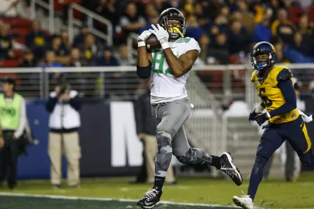 2014 — Emerged from the pack to claim primary tight end honors due to rangy size that's an asset as a receiver as well as his prowess at the line of scrimmage ... The first-team Pac-12 all-conference honoree finished tied for second-most touchdown receptions on the team (6), despite missing the last five games due to a significant leg injury at Utah ... Also the recipient of the Duane Cargill Memorial Award as the Ducks' Outstanding Offensive Impact Player as he paced Oregon tight ends with 25 total receptions for 420 yards - the program's most receiving yards by a player at that position in three years ... Caught a season and career-high five passes for 84 yards and a touchdown at UCLA, then surpassed his single-game receiving yards mark the following week vs. Washington, accumulating 99 yards, including a 66-yard career-long reception, on three catches ... Led the team in receiving against Wyoming, UCLA and Washington ... Credited with receptions in all but one of his 10 appearances.