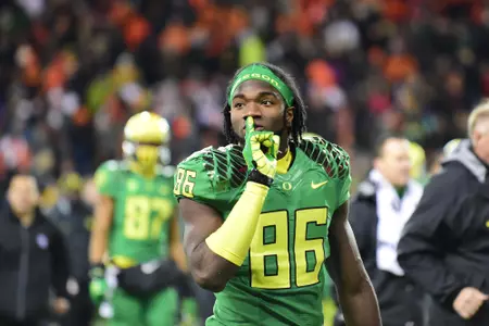 2015 - Finishing the year as the Ducks' eighth-leading tackler (No. 4 underclassman), only six full-time defenders stepped onto the field for more plays than the athletic Houston product despite officially being inserted into the starting lineup for only the final five games ... Included among his 48 tackles were 7.5 TFLs (equaling team's third best), with two of them taking place at Stanford (along with one fumble recovery) and two more vs. Washington State (in addition to a forced loose football) ... Playing in all 13 games and extending his consecutive string of appearances to 28 outings, he was credited with a career single-game best of nine tackles (5 unassisted) against the Cougars . . . Also contributed six stops in the win over the Cardinal while taking part in 86 plays ... Registered his most extensive time on the field with 114 snaps at Arizona State ... Transitioned to defensive end in the 2016 spring as part of the team's new 4-3 defense