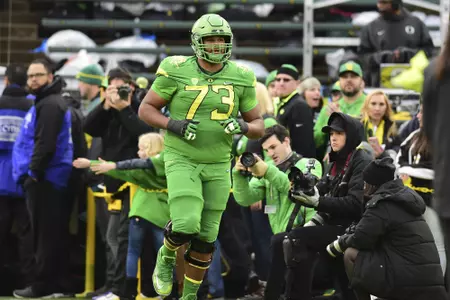 2017 – Started all 13 games his senior season ... Named third-team All-America by College Sports Madness and honorable mention All-America by both SB Nation and CollegeFootballNews ... Seventh linemen in UO history to be awarded the Morris Trophy as the Pac-12 Offensive Lineman of the Year, voted on by opposing defensive linemen ... Claimed first-team All-Pac-12 Conference honors, while being named Pro Football Focus first-team All-Pac-12 Conference ... Did not allow a quarterback sack or hit all season according to Pro Football Focus ... Allowed only three QB hurries according to PFF ... Integral part in Oregon’s 3,263 rushing yards gained in 2017 ... Oregon finished the year ranked 12th in FBS averaging 251.0 yards rushing per game ... Invited to play in 2018 Reese’s Senior Bowl.