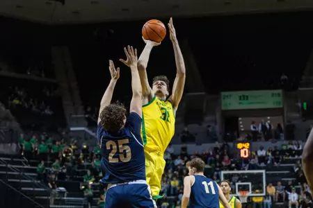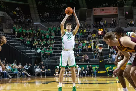 Third Team All-Big Ten and Big Ten All-Defense honoree … One of five finalists for the Kareem Abdul-Jabbar Center of the Year Award … Averaged a team-high 14.2 points (.511 FG%, .336 3P%, .811 FT%) along with 7.6 rebounds, 2.1 blocks and 1.9 assists … Led the Big Ten with 75 total blocks and his 2.1 per game ranked 18th in the country … One of three players nationwide to total at least 490 points, 260 rebounds and 70 blocks this season and was the only one of the three to make over 30 three pointers … Finished the season with three-straight double-doubles, and four in the last five games … Had nine double-doubles on the season … Scored a career-high 36 points (13-20 FG) with 12 rebounds and two blocks against Washington … First UO player with 35 points and 10 rebounds in a game since Luke Jackson in 2004 … Seven 20-point games, with six on the road or neutral sites … 23 points and a career-high 14 rebounds in road win at Oregon State … 23 points, six rebounds and three blocks in overtime road win at No. 11 Wisconsin … 19 points and nine rebounds in win over No. 9 Alabama … 10 double-digit rebounding outings … Blocked a career-high six shots with 18 points against Purdue … Five blocks in wins over Rutgers and USC … Recorded 24 multi-block games and blocked at least one shot in 30 of 35 games … Dished out a career-high six assists in each win over Indiana … Scored 14 points with 10 rebounds against Liberty in the NCAA Tournament first round and 16 points with 11 rebounds in the second round against Arizona.