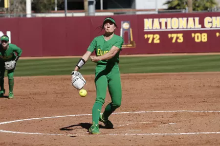 Went 5-1 with a 2.39 ERA and 47 strikeouts to just seven walks over 44.0 innings pitched … Finished third in the conference and 16th nationally in strikeout-to-walk ratio at 6.71 … Fourth in the Pac-12 and 32nd in the country in walks allowed per seven innings, giving up just 1.11 … Also recorded a pair of saves, finishing as one of just four pitchers in the conference to have multiple saves while earning five or more wins in the circle … Showed drastic improvement in her control from her sophomore to junior seasons, going from giving up 3.56 walks per seven innings in 2019 to just 1.11 this year … Lowered her ERA from 4.12 as a sophomore to 2.39 as a junior … Puerto Vallarta College Challenge (Feb. 6-9): Did not allow a run on the opening weekend of the season, throwing 12.0 innings over three games and striking out 15 while walking just one and surrendering only five hits … vs. Nevada (Feb. 8): Tossed seventh career shutout, and sixth as a Duck, striking out 11 and walking one while allowing four hits in a complete game … vs. Long Beach State (Feb. 9): Threw a perfect sixth and seventh inning out of the bullpen to earn first save as a Duck … vs. Notre Dame (Feb. 21): Worked a complete game with three strikeouts, allowing a run on seven hits in a 5-1 win … at Tulsa (Feb. 28): Earned second save of the year, going three shutout innings and striking out three while allowing just a hit … vs. Seattle (March 7): Took a no-hitter into the fifth inning of a run-rule win but ending up giving up a pair of runs on two hits while fanning seven.