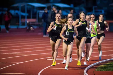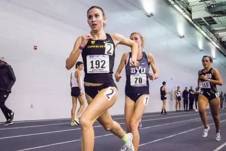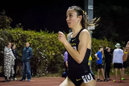 2017-18: Outdoor - Competed in the 10,000 Meter Prelims (33:28.08) at the NCAA West Preliminaries ... Finished the 10,000 meters in third place with a time of 33:24.39 at the Pac-12 Championships, scoring five points for the Ducks and moving into tenth on the UO all-time list ... Also competed in the 5,000 meters at the Pac-12 Championships, finishing with a time of 16:43.84 ... Competed in the 5,000 meters (16:12.15) at the Bryan Clay Invitational ... Took third place in the 3000 meters with a time of 9:52.85 at the Pepsi Invitational ... Recorded a time of 33:36.73 at the Stanford Invitational in her first-ever 10,000 meters. Indoor - Won the MPSF title in the 5000 meters with a time of 15:55.0 at the 2018 MPSF Championships ... Recorded a new personal best and the ninth fastest time in UO history in the 5,000 meters (15:55.45) at the Husky Classic ... Competed in the 3000 meters (9:23.48) at the Columbia Challenge ... Finished the mile in 4:52.45 at the UW Indoor Preview ... Cross Country - Earned all-American honors with a 34th place finish (20:09.3) at the NCAA Championships, finishing as the third Duck across ... Was the Ducks' third finisher and 13th overall (19:51.5) at the NCAA West Regional ... Took 23rd place overall and fourth for the Ducks with a time of 19:31.6 at the Pac-12 Championships ... Finished third for the Ducks and 15th overall with a time of 20:09.06 at the Pre-Nationals Invitational ... Made her Oregon debut with a 12th place finish overall (19:24.3) at the Bell Dellinger Invitational.