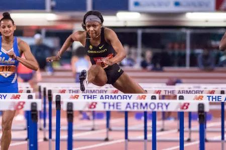 2017-18: Outdoor - Competed in the 100 meter hurdle prelims (14.07) at the NCAA West Preliminaries ... Took sixth place in the 100 meter hurdles (13.24) to earn three points for Oregon at the PAC-12 Championships ... Placed first in the 100 meters with a time of 12.03 at the Oregon Twilight ... Took fourth place in the 100 meter hurdles (13.5) and competed in the 200 meters (24.23) at the Desert Heat Classic ... Took sixth place in the 100 meter hurdles with a time of 13.62 at the Mt. Sac Relays Collegiate Open ... Helped her team take second place in the 4x100 meter relay (44.94) at the Aztec Invitational ... Also competed in the 100 meter hurdles (14.02) and the 200 meters (24.88) at the Aztec Invitational. Indoor - Took fourth place in the 60 meter hurdles with a time of 8.45 at the MPSF Championships ... Recorded a new personal record in the 60 meter hurdles (8.33) and also competed in the 200 meters (24.59) at the Don Kirby Elite Invitational ... Competed in both the 60 meter hurdles (8.38) and the 200 meters (24.88) at the Columbia Challenge ... Began her career as a Duck by advancing to the finals of the 60 meter hurdles where she recorded a time of 8.41 at the UW Indoor Preview ... Also recorded a time 25.11 in the 200 meters at the UW Indoor Preview.