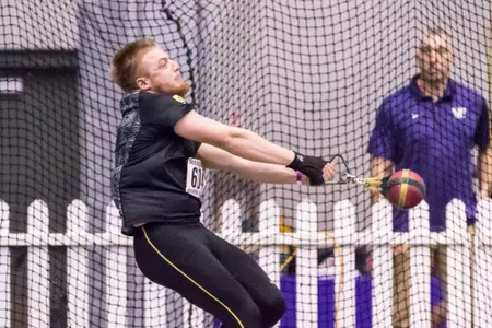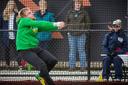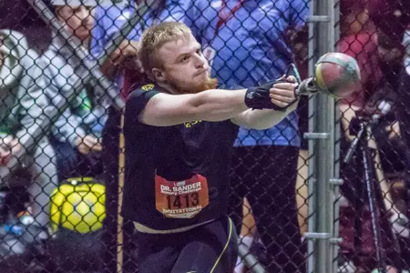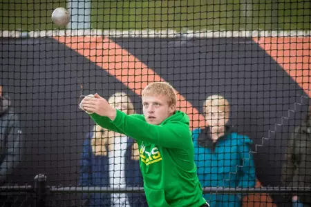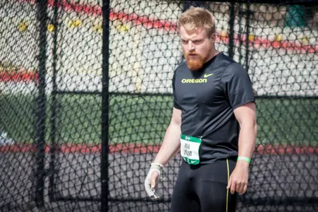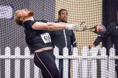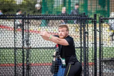 2017-18: Outdoor - Competed in the hammer throw at the NCAA West Regional where he recorded a new PR of 206-5 (62.91m) ... Competed in the hammer throw (194-02/59.18m) at the PAC-12 Championships ... Took first place in the hammer throw with a mark of 196-10 (59.99m) at the Oregon Twilight ... Took third place in the hammer throw with a mark of 190-02 (57.98m) at the OSU High Performance ... Recorded a personal record and took second place in the hammer throw with a mark of 200-09 (61.18m) at the Mt. Sac Relays ... Placed third in the hammer throw with a mark of 196-06 (59.90m) at the Pepsi Invitational ... Indoor - Set a new personal record and moved to eighth on the UO all-time list in the weight throw with a mark of 60-06.75 (18.46) at the MPSF Championships ... Recorded a mark of 59-05.00 (18.11m) in the weight throw at the Husky Classic ... Set a new personal record in the weight throw (59-11.00/18.26m) at the Columbia Challenge ... Recorded a personal record in the weight throw (58-01.25/17.71m) at the UW Indoor Preview.