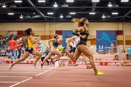 meters... Took second place in the 200 meters (22.39) and fourth place in the 100 meters (11.09) at the NCAA Outdoor Championships... Advanced to the NCAA Championships in both the 100 meters and 200 meters after posting respective times of 11.08 and 22.44 (+ w3.8)... Member of the Pac-12 4x100 relay championship team (42.81)... Also Finished second in the 100 meters (11.10) at the Pac-12 Championships... Helped her team set new collegiate records in both the 4x200 (1:28.78) and the 4x100 (42.34) at the Florida Relays... Broke 4x100 collegiate record that she helped set earlier in the season by finishing in 42.12 at the Mt.SAC Relays... Also took second place in the 100 meters at the Mt.SAC Relays by finishing in 11.06... Helped her 4x100 relay team break the Penn Relay's record by finishing in 42.35... Indoor - Claimed her first NCAA indoor title in the 200 meters in an Oregon and facility record of 22.42... Also took third in the 60 meters at the NCAA Indoor Championships with a time of 7.20... Finished third in the 60 meters (7.30 seconds) and fourth in the 200 meters (23.16 seconds) at the Columbia EastWest Challenge... Set a new indoor personal record in the 200 meters (22.80) at the UNM Don Kirby Invitational.