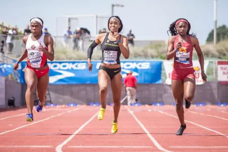 Prep: Six-time Track and Field News All-American, being named in the 100 and 200 as a sophomore, junior and senior…eight-time California State Champion tying Allyson Felix for the most in the state’s history…second person in California history to win three-straight double state championships in the 100 and 200, joining Marion Jones…2014 Gatorade California Track and Field Athlete of the Year…member of three state championship teams at Poly High School…runner up at the 2014 USATF Junior Championships in the 100 and advanced to the IAAF World Junior Championships…2014 World Junior Gold Medalist in the 4x100 relay…2013 World Youth Medalist in the 100 (silver) and 200 (bronze)…2012 Penn Relays High School Girls Athlete of the Meet…prep bests: 100 – 11.22; 200 – 22.96.