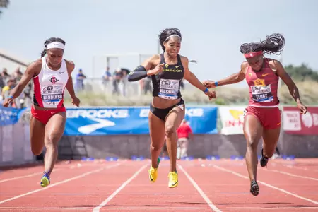 2017-18: Outdoor - Earned first-team All-American honors by helping her team take second in the 4x100 meter relay (43.06) at the NCAA Championships ... Earned first-team All-American honors in the 100 meters (11.50) and competed in the 200 meter semis (22.88) at the NCAA Championships ... Qualified for the NCAA Outdoor Championships in both the 100 and 200 meters with times of 11.30 and 23.03, respectively, at the NCAA West Preliminary Round ... Also helped her team take first place and qualify in the 4x100 meter relay (43.32) at the NCAA West Preliminaries ... Took third place in the 100 meters (11.14w) to score Oregon six points and took seventh place in the 200 meters (23.08w) to score Oregon two points at the PAC-12 Championships ... Also helped her team take second place in the 4x100 meter relay (43.13) to score Oregon eight points at the PAC-12 Championships ... Helped her team take first place and move into fourth all-time at Oregon in the 4x100 meter relay (42.7) at the Desert Heat Classic ... Also took second place in the 200 meters (22.92) and took fourth place in the 100 meters (11.31) at the Desert Heat Classic ... Took fifth place in the 100 meters (11.17) and took seventh place in the 200 meters (23.31) at the Mt. Sac Relays Elite Invitational ... Also helped her team take second place in the 4x100 meter relay (42.93) at the Mt. Sac Relays Elite Invitational ... Helped her team take first place in the 4x100 meter relay with a time of 43.92 at the Pepsi Invitational ... Helped her team take second place in the 4x100 meter relay (44.94) and took first place with a time of 11.25 at the Aztec Invitational. Indoor - Competed in the 60 meter preliminaries at the 2018 MPSF Championships ... Competed in the 60 meters (7.38) and the 200 meters (23.73) at the Don Kirby Elite Invitational ... Took third place in the 200 meters at the Columbia Challenge with a time of 23.73 ... Ran 7.41 in the 60 meters at the UW Preview to reach the finals, where she finished sixth in 7.46.