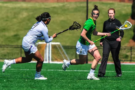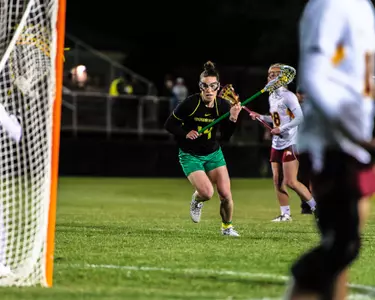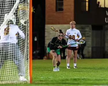 2014: Saw action in 17-of-19 matches in her freshman campaign…found the back of the net 18 times, tying for eight-best on the team and first amongst freshmen…scored her first collegiate goal at Robert Morris (3/2)…recorded her first hat-trick against St. Mary’s (4/6)…netted a career-high four goals at San Diego State (4/20) on Easter Sunday to help UO notch the program’s 100th victory…earned MPSF Rookie of the Week honors for her efforts…finished the season with 12 groundballs, 10 draw controls and 10 caused turnovers.