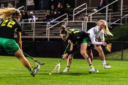 2017: Named an all-MPSF first-team selection after recording 54 points (43 G, 11 A), 32 ground balls, 28 caused turnovers and 24 draw controls ... Tied for third in UO single-season history with 43 goals, tied for 10th with 54 points ... 54 points in a season was a huge career-high after previously having a high of 30, and 43 goals was 17 more than her previous season-high ... Led the team in caused turnovers ... Started all 17 games for the Ducks, scoring at least one goal in every contest ... Recorded 13 games with multiple goals, including four three-goal games, one four-goal game, one five-goal game and one six-goal game ... Scored a career-high six goals and added an assist to finish with seven points in 18-5 win at Winthrop (3/3) ... Tallied six points with five goals and an assist in a win at George Mason (3/27) ... Finished the season with five straight multi-goal games, including three straight games with three scores ... Recorded multiple assists against both Michigan and Vermont ... Nine games with multiple caused turnovers ... Hauled in a career-high six draw controls in regular-season finale against Saint Mary's ... Scored four free-position goals throughout the year on eight attempts ... Shot .489 throughout the year and .852 on shots on goal ... MPSF all-academic ... Finished Oregon career with 100 goals, 16 assists and 116 points ... Third all-time at Oregon with 72 career caused turnovers.