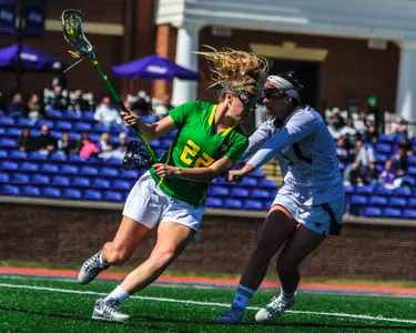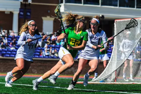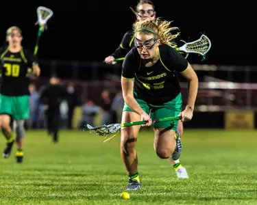 2015: Started 17-of-18 games as a freshman and filled the void of Shannon Propst, tallying 45 points (9g, 36a) to go with 13 ground balls…finished her freshman campaign 12th in the nation and second in the Mountain Pacific Sports Federation with 36 assists and 10th in the nation with her 2.00 assists per game…her 36 assists is fourth-best in the Oregon single-season assist record book...her 2.50 points per game is good for second on the team…dished out an assists in eight-straight games…started her collegiate career with three points (2g, 1a) against Presbyterian (2/13)…matched her season-high of six assists twice, first against Saint Mary’s (3/1) and then against California (4/5) to help the seniors go out with a win in their final home game…she also finished the Cal game with seven points, most on the team in 2015…tallied five assists against Robert Morris (3/15) at home…a week later, she dished out four assists against Fresno State (3/23)…wrapped up her freshman campaign with at least one point in 16-of-18 games, including her last seven games.