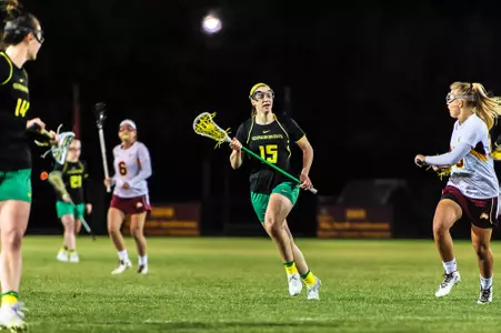 2017: Started all 17 games for the Ducks ... Opened the year as a defender before switching to attacker midway through the season ... Scored 19 goals and dished out four assists in final 10 games after moving to the offensive end ... Recorded first career goal in win against Vermont ... At fourth-ranked Colorado, scored a career-high four goals on five shots while also hauling in five draw controls .... Six games with two goals or more, including two three-goal games and one four-goal game ... Led the Ducks with 53 draw controls ... Grabbed a career-high eight draw controls in win at Winthrop while also dishing out first career assist ... Four games with multiple caused turnovers, including three different games with three ... Finished year with 23 points after not recording a point through first two collegiate seasons ... MPSF all-academic.