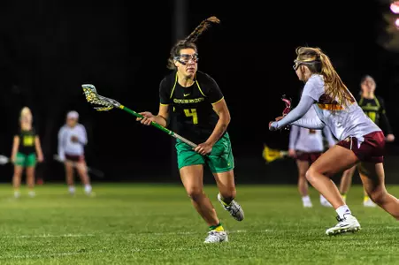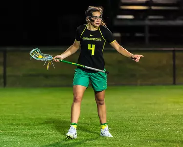 2018: Started in all 18 games as a senior captain for UO ... Recorded 29 goals on the year, scoring a career single-game high five goals to help propel UO to an 18-11 win over No. 16 USC ... Netted multiple goals in seven games ... Back-to-back four or more goal games against Arizona State (4/6) and USC (4/8) ... Recorded three game-winning goals on the year, one in UO's season opener against UC Davis (2/16) as well as East Carolina (4/1) and Arizona State (4/6) ... Dished out three assists, one each against Syracuse (2/18), California (3/9) and Colorado (4/20) ... Recorded multiple draw controls in the first five games of the season, finishing with 16 total ... Led the team with a .912 shots on goal percentage with 52 of her 57 shots on frame ... Also recorded 22 ground balls and eight caused turnovers.